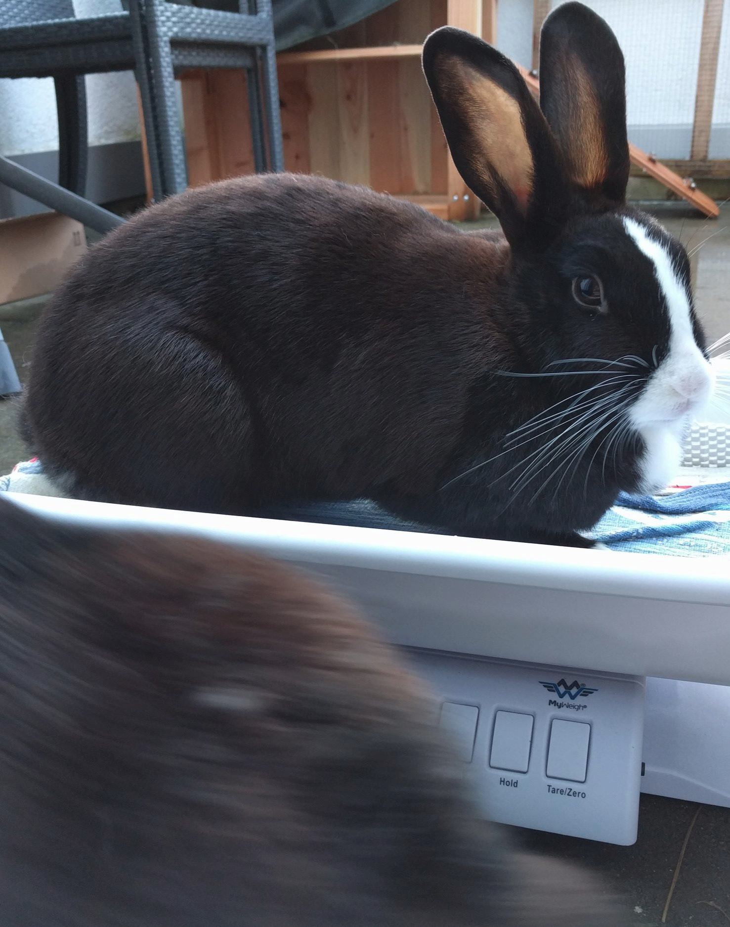 Der einzige Grund, warum ich mich in dieser Zeit freiwillig habe wiegen lassen, waren die Bananenstückchen, die es immer als Belohnung gibt, wenn man still auf der Waage sitzt. Die Zweibeiner haben einfach noch nicht verstanden, dass von süßer Banane keiner abnehmen kann - insbesondere nicht, wenn man fast jeden Tag gewogen wird. Eigentlich kann ich also gar nichts für mein Gewicht.