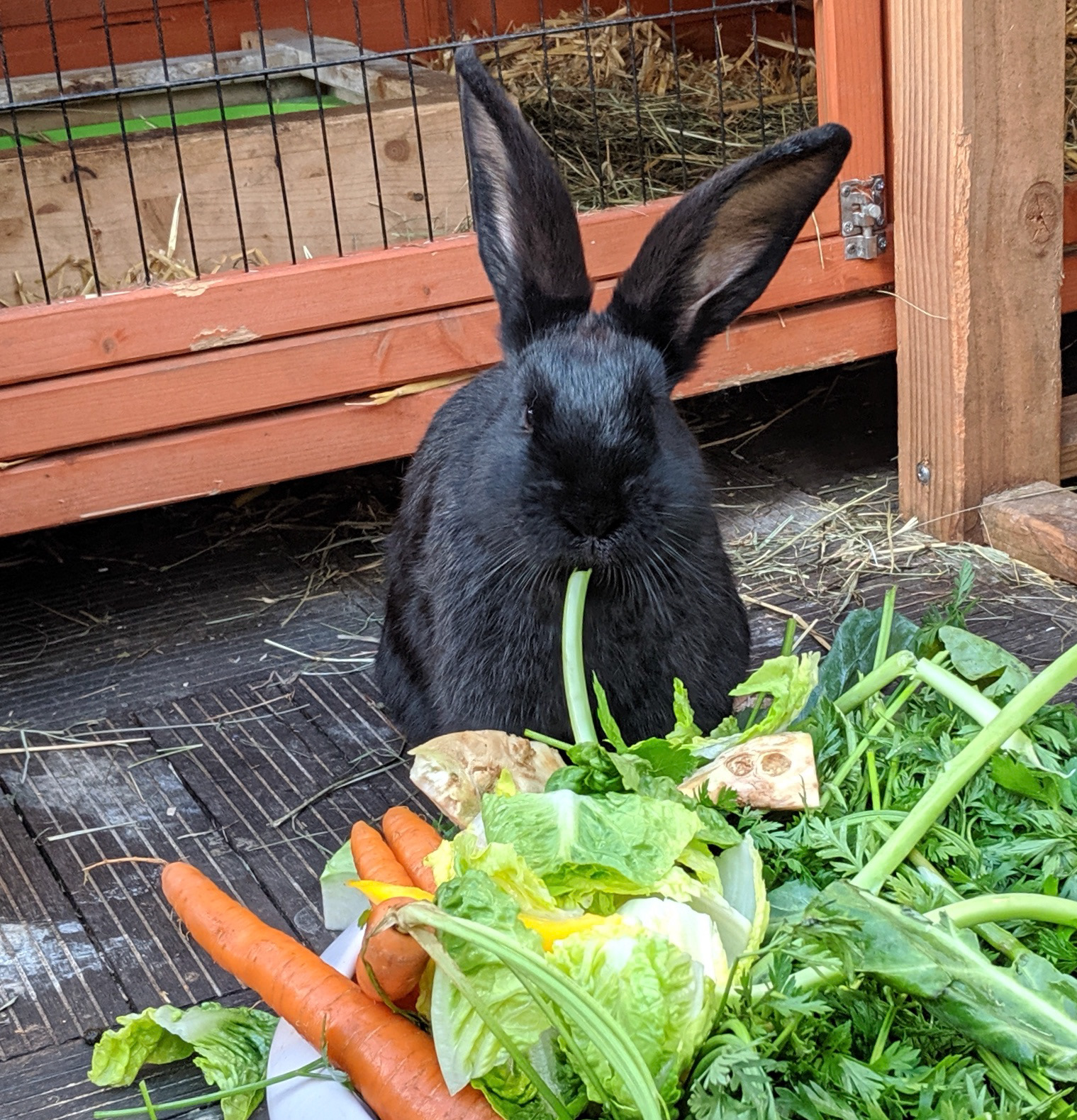 Davon einmal abgesehen, bin ich aber sehr froh, dass unsere Möhrchengeber entschieden haben, dass Penny bleiben darf. Auch wenn sie dann eben noch ein paar mehr Möhrchen geben müssen (und Salat und Kohlrabiblätter und Dill...) als bisher. Sie haben uns erklärt, dass es schon ok ist wenn wir zu viert sind. Immerhin waren die 3 Musketiere (oder die drei Carroteers, wie wir uns nennen) später auch zu viert. Der vierte und jüngste Musketier hieß D‘Artagnan. In unserem Fall heißt sie eben Penny. Hauptsache einer mehr, mit dem man sich ums Futter streiten, toben und kuscheln kann. Ich persönlich find das toll!